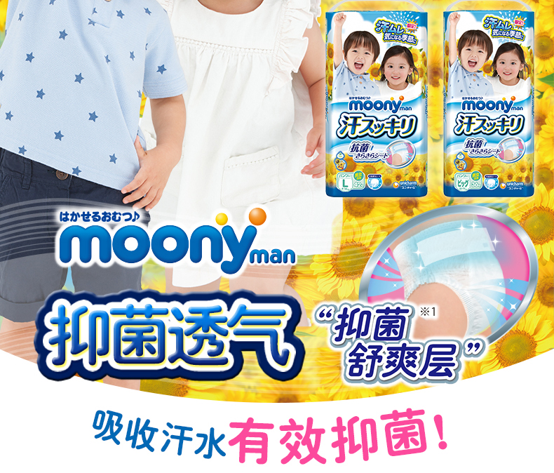 【抑菌透气】尤妮佳moony日本进口抑菌透气裤型纸尿裤 ---S