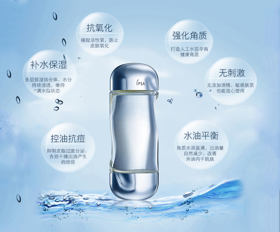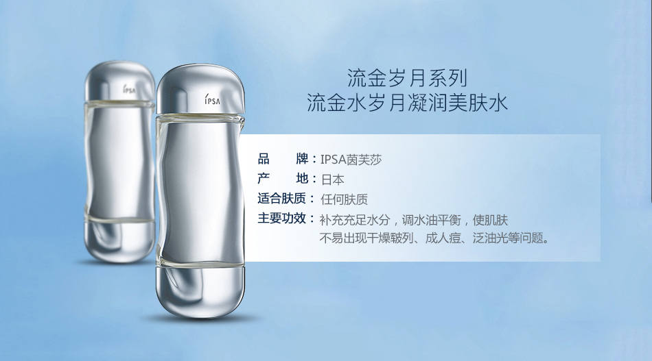 特别推荐——IPSA日本官网销售第一位的明星产品! 这款水水强调高保湿和明亮肤色,升级版还特别加了一个促进代谢的成分,可以改善粗糙、预防堵塞、毛孔等现象,并可以预防成人粉刺,属于高机能又温和的一款化妆水。