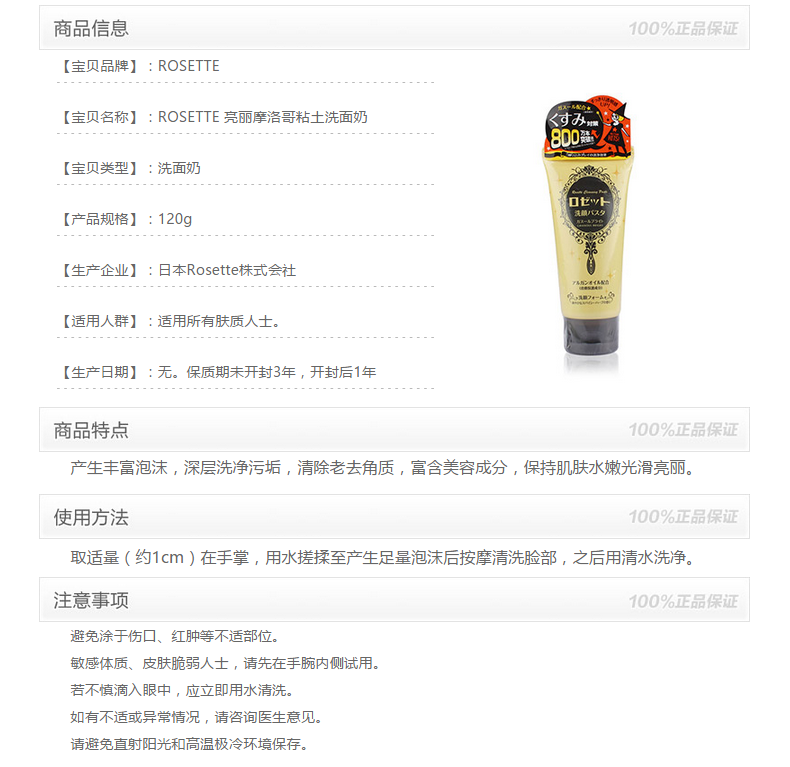 日本 ROSETTE/露姬婷 摩洛哥粘土洗面奶 黄色 120g