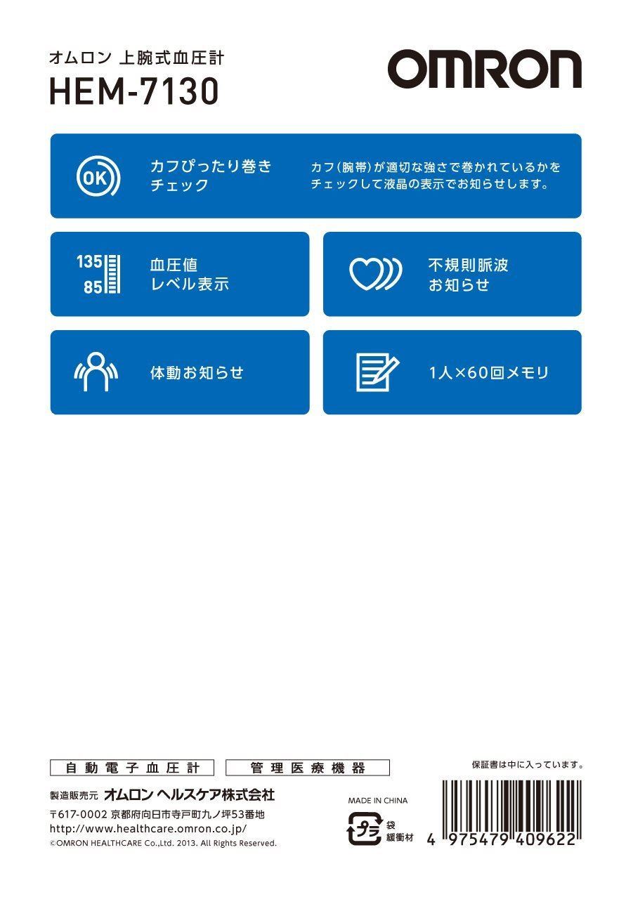 欧姆龙(OMRON)电子血压计家用上臂式HEM-7130