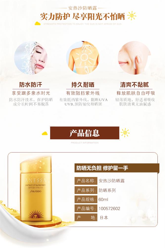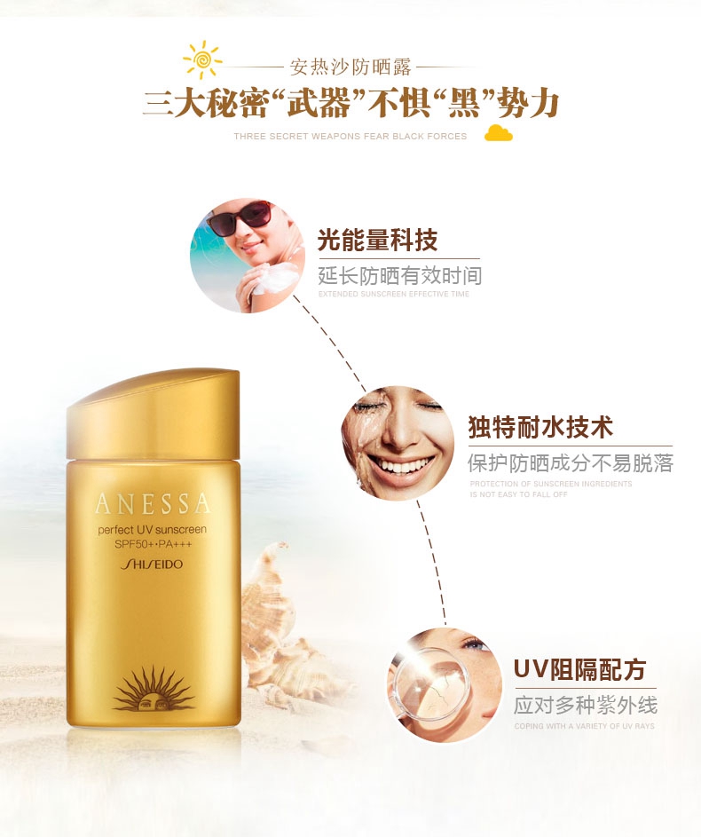 产品名称:Shiseido/资生堂 安耐晒黄金钻级防晒露
