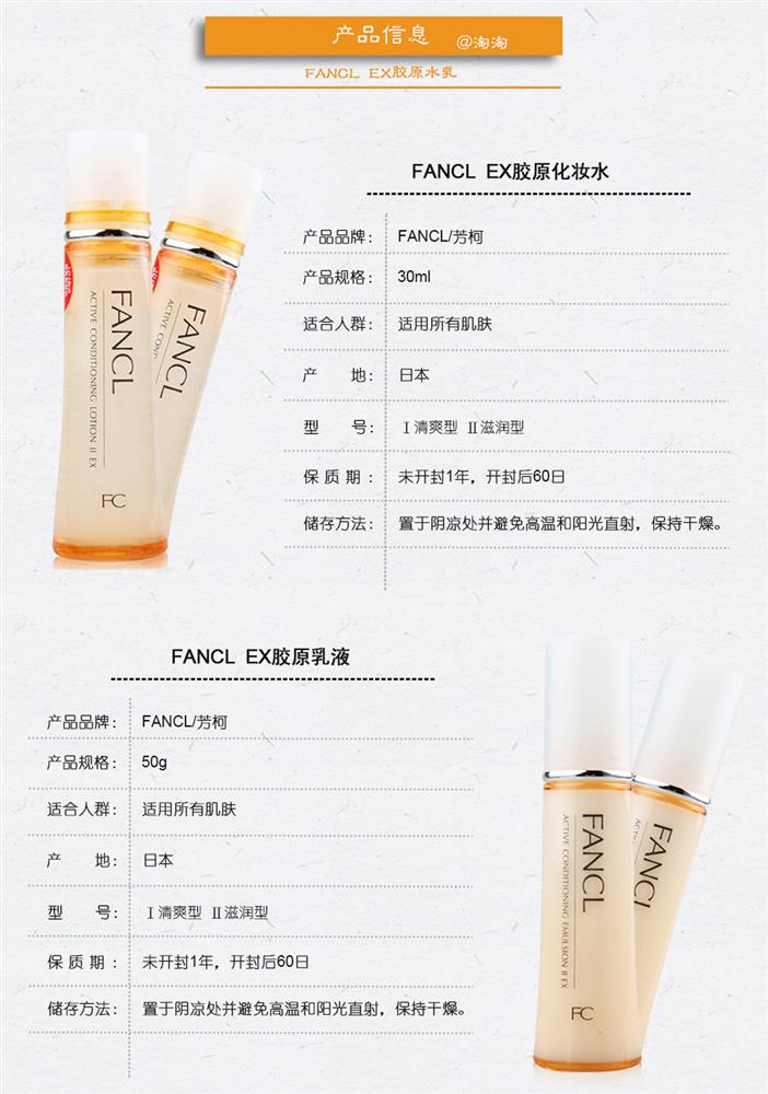 FANCL无添加ag版胶原蛋白 补湿液/乳液30ml