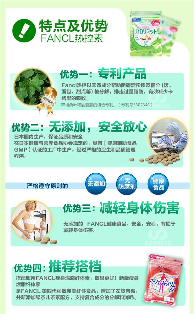 FANCL 纤体热控片 热控素 90日/3袋/360粒