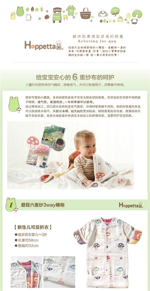 Hoppetta 日本直邮日本制新生儿衣服/婴幼儿睡袍 六重纱睡袍