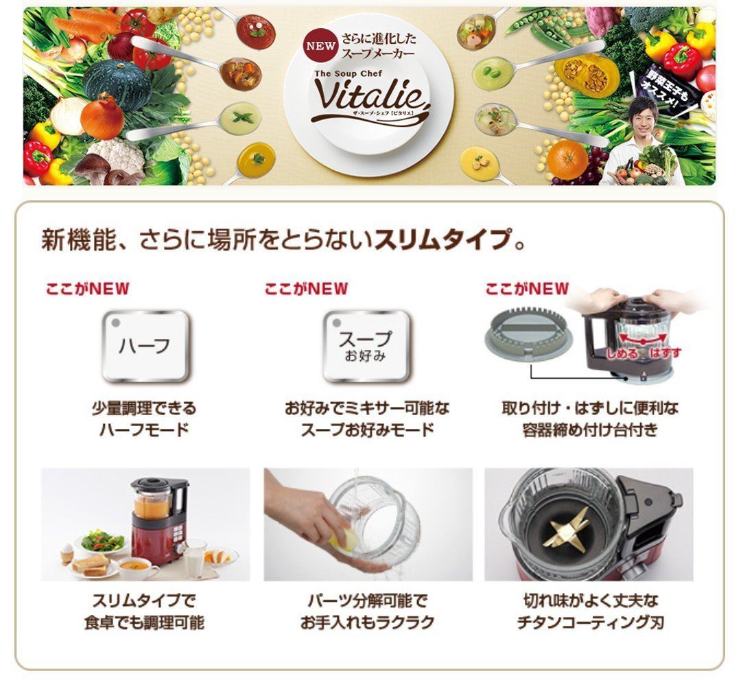 ハーフ機能を搭載し、2人前調理が可能に。スープ、ポタージュ、おかゆが約25分間で調理できる。