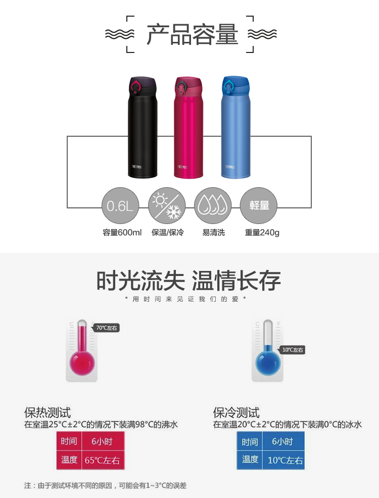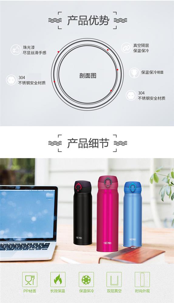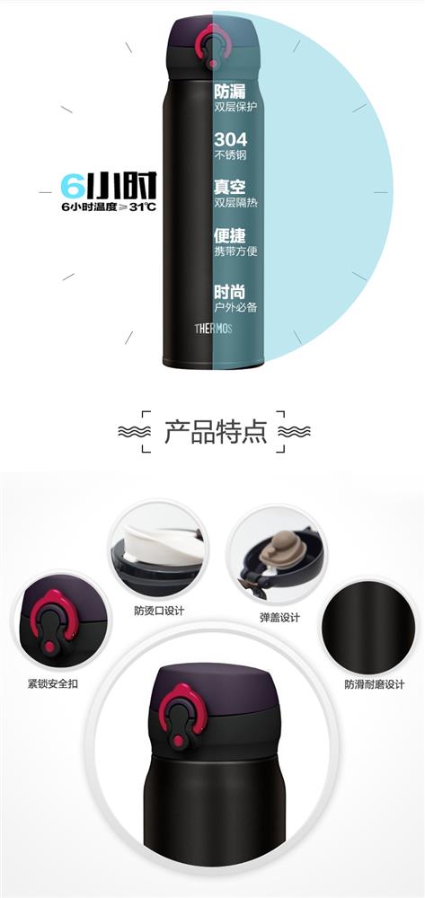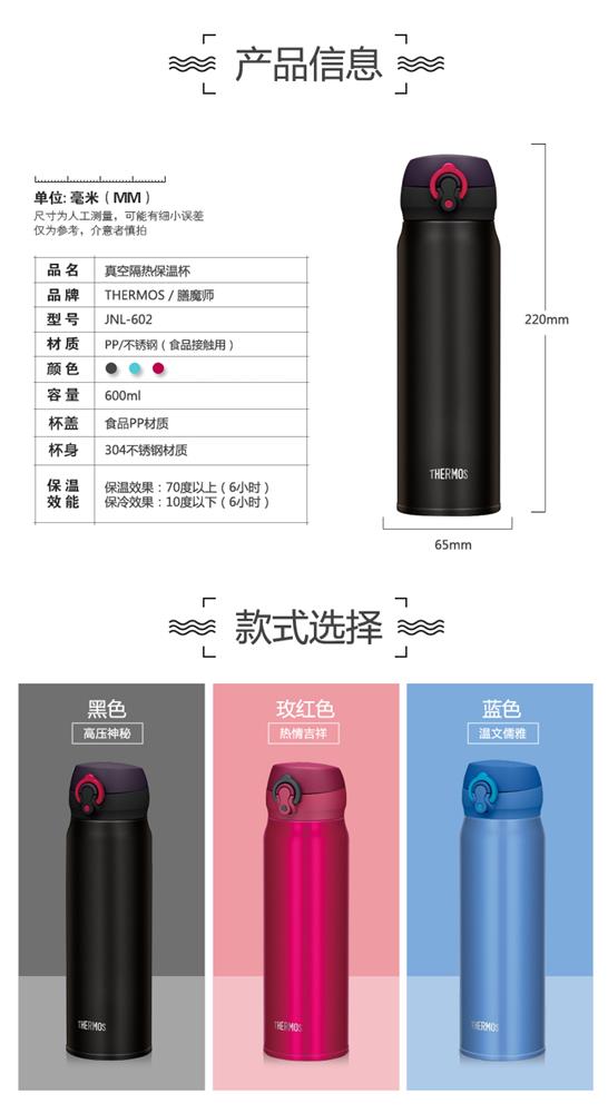 THERMOS膳魔师 保温杯保冷杯 真空不锈钢便携水杯 0.6L