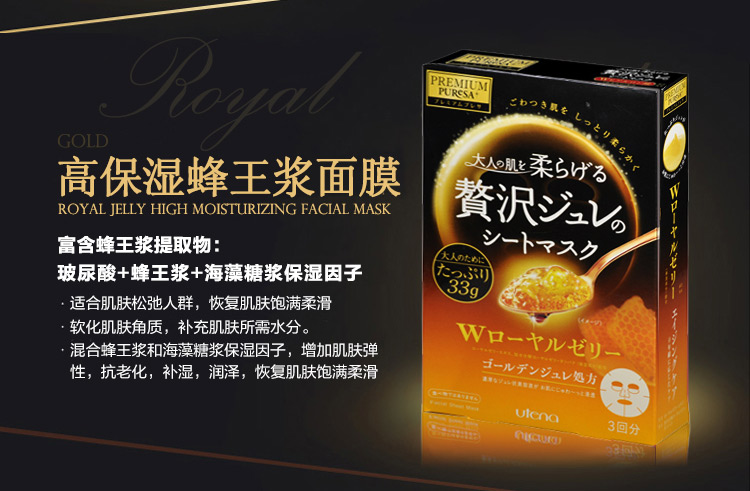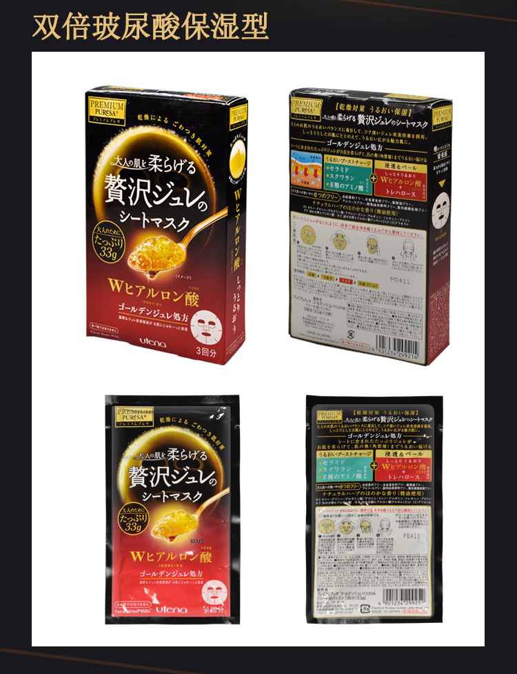 Utena佑天兰PREMIUM PURESA黄金级双重胶原果冻保湿面膜 精油高保湿蜂王浆 三盒9片装