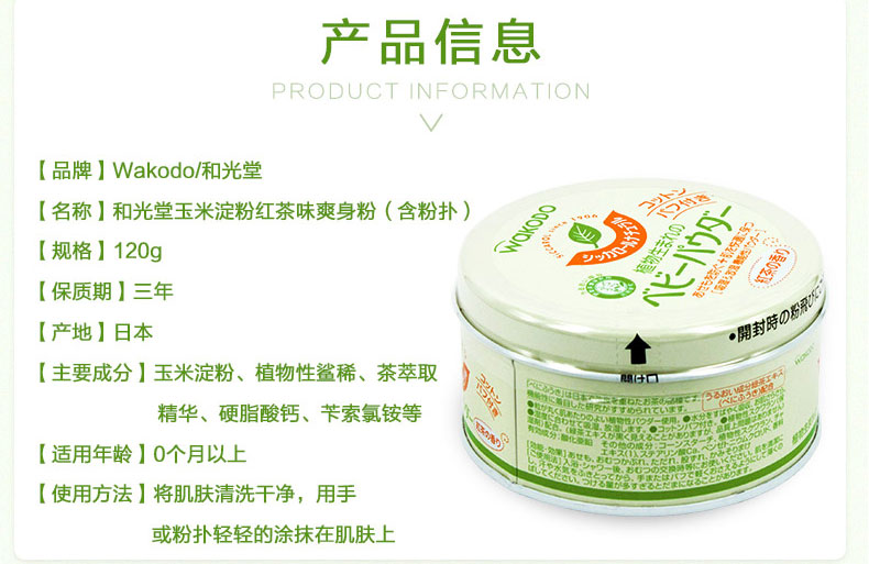 Wakodo和光堂儿童婴儿宝宝护肤红茶宝宝婴幼儿爽身粉120g